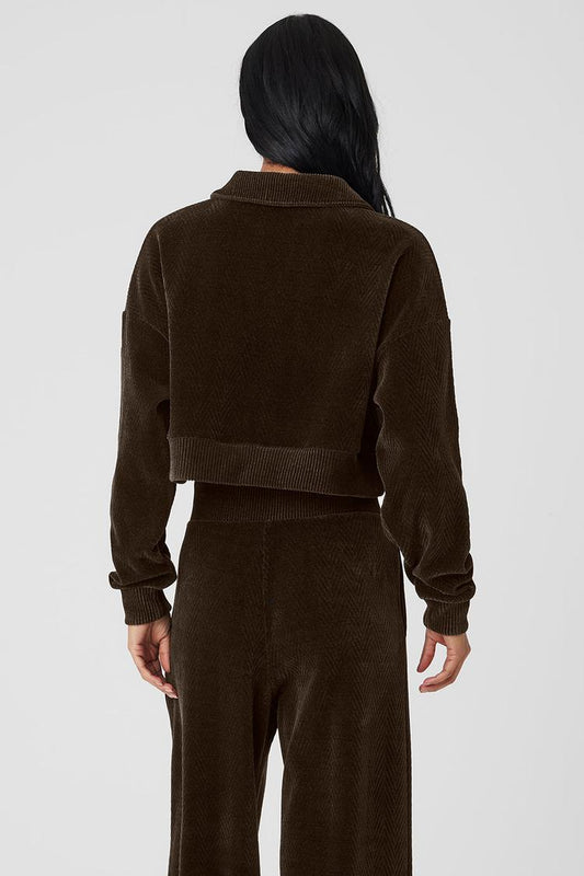 CROPPED COZY DAY HENLEY PULLOVER Espresso